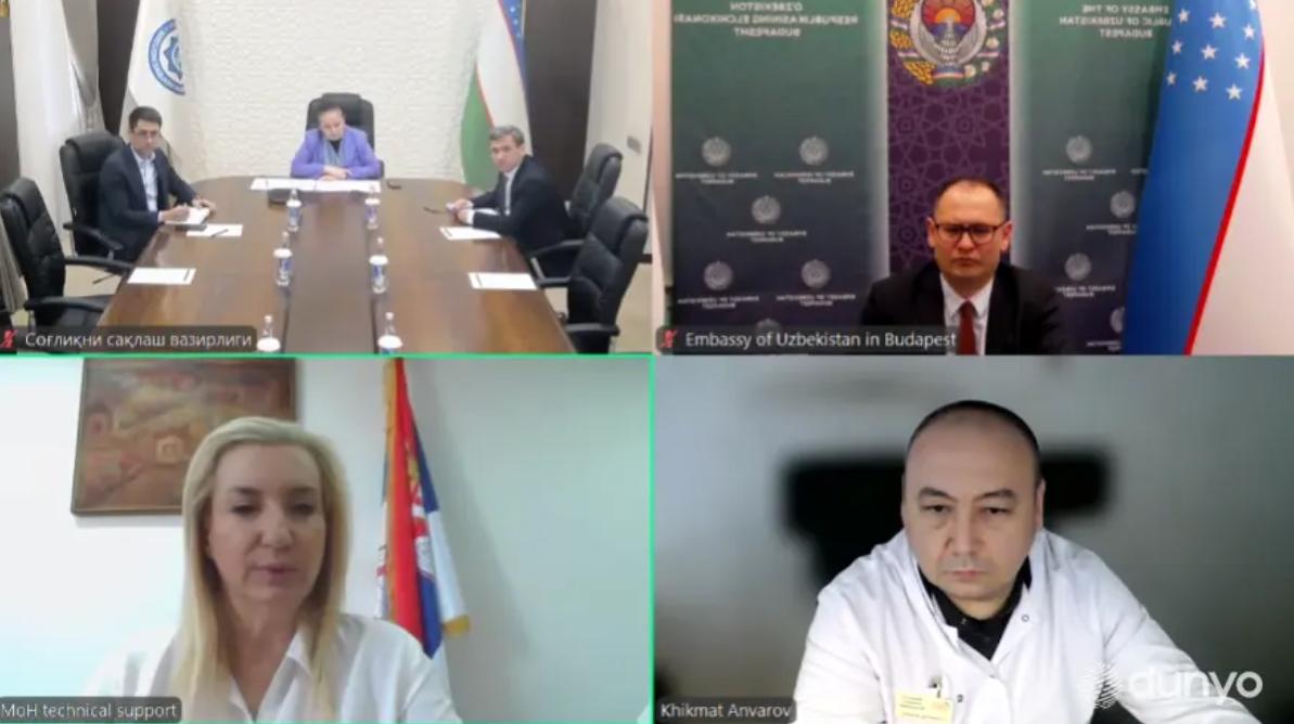 В формате видеоконференции состоялись переговоры между заместителем министра здравоохранения Узбекистана Эльмира Баситханова и государственным секретарём Министерства здравоохранения Сербии Ивана Сташевич-Карличич. Об этом сообщил корреспондент ИА «Дунё».